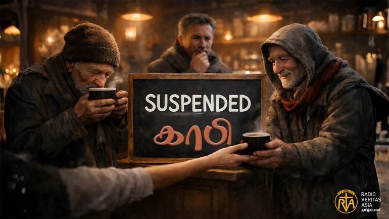 'Suspended Coffee' என்ற ஒரு காணொளியை அண்மையில் யூ டியூப்பில் பார்த்தேன். இத்தாலி நாட்டின் நகரம் ஒன்றில் ஓர் உணவகத்தில், "ஐந்து காபி, இரண்டு Suspended" என்று ஒரு பெண் கூறி, ஐந்து காபிக்குப் பணம் கட்டிவிட்டு மூன்று காபியை மட்டும் வாங்கிச் செல்கிறார். அடுத்து வந்த ஓர் இளைஞர் "பத்து காபி, ஐந்து Suspended" என்று பத்து காபிக்குப் பணம் செலுத்திவிட்டு, ஐந்து காபியை மட்டும் வாங்கிச் செல்கிறார்.