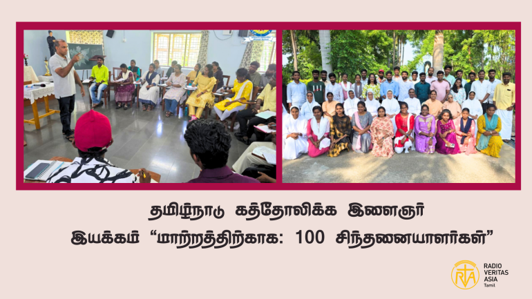 தமிழ்நாடு கத்தோலிக்க இளைஞர் இயக்கம் “மாற்றத்திற்காக: 100 சிந்தனையாளர்கள்” என்ற தலைப்பில் பணிப்பகிர்வு!  தமிழ்நாடு மறைமாவட்ட ஆயர்கள் பேரவையின் இளைஞர் ஆணையத்தின் கீழ் செயல்படும் தமிழ்நாடு கத்தோலிக்க இளைஞர் இயக்கம் (TCYM), தனது தலைமைத்துவ உருவாக்கப் பயிற்சி திட்டமான “மாற்றத்திற்காக: 100 சிந்தனையாளர்கள்” என்ற நிகழ்வின் நேரடி அமர்வை அக்டோபர் 11  மற்றும் 12 தேதிகளில் திருச்சியில் உள்ள சிஸ்டர்ஸ் ஆஃப் சாரிட்டி (SCCG) தலைமையகத்தில் நடத்தியது.  தமிழகத்தின் பல பகுதிகளில் இருந்து வந்த 36 இளைஞர்கள் கலந்து கொண்ட இந்த இரு நாள் பணிப்பகிர்வு, கிறிஸ்தவ நம்பிக்கையிலும் மதிப்புகளிலும் வேரூன்றிய விமர்சன சிந்தனையாளர்களையும் சமூக தலைவர்களையும் உருவாக்குவதை நோக்கமாகக் கொண்டது.  நிகழ்வு, TCYM இயக்கத்தின் தலைப்புப் பாடலான “பொது இலக்கு கனவெடுத்துப்” பாடலுடன் தொடங்கியது. பின்னர் TCYM இயக்க இயக்குநர் மத. க. எம். எடிசன் அவர்கள் தொடக்க உரையில், இரண்டு நாள் பயிற்சித் திட்டத்தின் நோக்கங்களை விளக்கினார்.  முதல் அமர்வான “அம்பேத்கரின் பார்வையில் சமூக நீதி” என்ற தலைப்பில், மத. உ. ஜெகன் போஸ், செயின்ட் பால் பெரியாலயப் பேராசிரியர் வழிநடத்தினார். அவர், ஜனநாயகக் கொள்கைகளை பாதுகாப்பதின் அவசியத்தையும் புறக்கணிக்கப்பட்ட மக்களின் பங்களிப்பை உறுதிசெய்வதின் முக்கியத்துவத்தையும் வலியுறுத்தினார்.   “சமூக நீதி என்பது தொண்டு அல்ல; அது உரிமை. இது ஒருவரின் தனிப்பட்ட கடமை அல்ல, அரசின் பொறுப்பு,” என்று மத. ஜெகன் குறிப்பிட்டார்.  அடுத்த அமர்வில், “பூமியின் நண்பர்கள்” எனப்படும் அடிப்படை இயக்கம் அறிமுகப்படுத்தப்பட்டது. இது சுற்றுச்சூழல் நீதியை ஊக்குவிக்கும் ஒரு புல இயக்கமாகும். இளைஞர்கள் இளைஞர் ஆணையத்தின் மாத இதழான “துடிப்பு” குறித்து விமர்சன ஆய்வுகளை செய்து தங்களது கருத்துகளையும் பகிர்ந்தனர்.  மாலை நேரத்தில், மத. க. எம். எடிசன் அவர்கள் “சாதியற்ற தமிழ்ச் சமூகமும் சாதி சார்ந்த தமிழ்ச் சமூகமும்” என்ற தலைப்பில் உரையாற்றினார். இதில் அவர் தமிழ்நாட்டில் சாதி அமைப்பின் வரலாற்றுப் பின்னணியையும், இணைப்பு மற்றும் நீதி சார்ந்த சமூகத்தை உருவாக்கும் திருச்சபையின் பங்கையும் சிந்தனையோடு பகிர்ந்தார். நிகழ்வு மாலை ஜெபமாலையுடன் நிறைவடைந்தது.  இரண்டாம் நாள் திருப்பலியுடன் தொடங்கியது. அதில் பங்கேற்ற இளைஞர்கள் சமூக நீதி காக்கும் உறுதிமொழி எடுத்தனர்.  காலை அமர்வில், வழக்கறிஞர் அருட்தந்தை  சவ