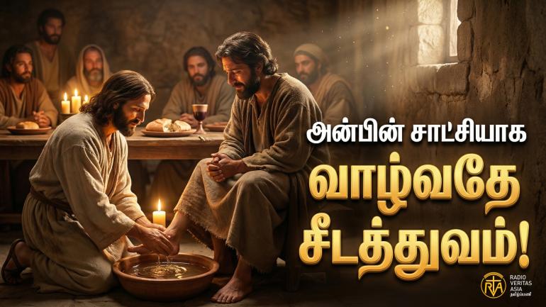 புனித வியாழனான இன்று,  இயேசு தமது சீடர்களின் கால்களை கழுவி, உண்மையான மகத்துவம் சேவையில் இருப்பதை கற்றுக்கொடுத்தார். “நான் உங்களுக்குச் செய்ததை நீங்கள் ஒருவருக்கொருவர் செய்யுங்கள்” என்று அவர் சொன்னார். இது அன்பும் தாழ்மையும் கொண்ட வாழ்க்கைக்கு நாம் அழைக்கப்படுகிறோம்.