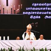 பினாங்கில் நடைபெறும் எதிர்நோக்கின் திருப்பயணிகள் ஆயிரத்திற்கு மேற்பட்ட ஆசிய பிரதிநிதிகளை நோக்கி உரையாற்றுகிறார் கார்டினல் லூயிஸ் அன்டோனியோ டாக்ளே.